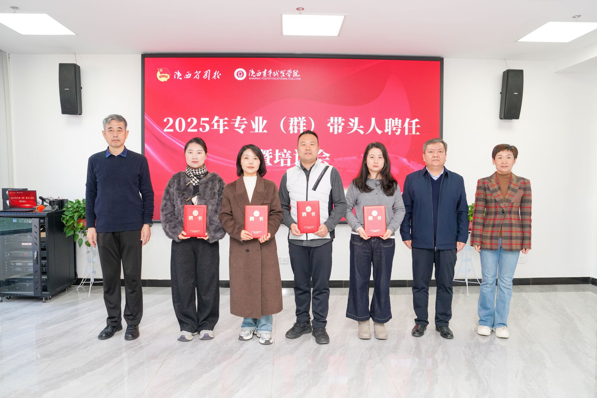 会议组织学习了《陕西青年职业学院专业(群) 带头人选聘管理办法(修订)》。韩凯军宣读学校专业(群)带头人聘任文件,14名教师被聘为专业(群)带头人。校领导为专业(群)带头人颁发聘书。